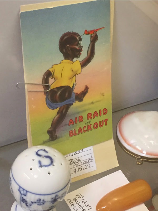 I don’t know what this is. There may be an old meaning I’m not getting, but I don’t understand why he’s half naked (what is up with all these half-naked kids in antique malls?) or what the poster means. In my “modern” eyes, this just looks kinda racist. Especially considering the employee wrote “Black Postcard” as the description……