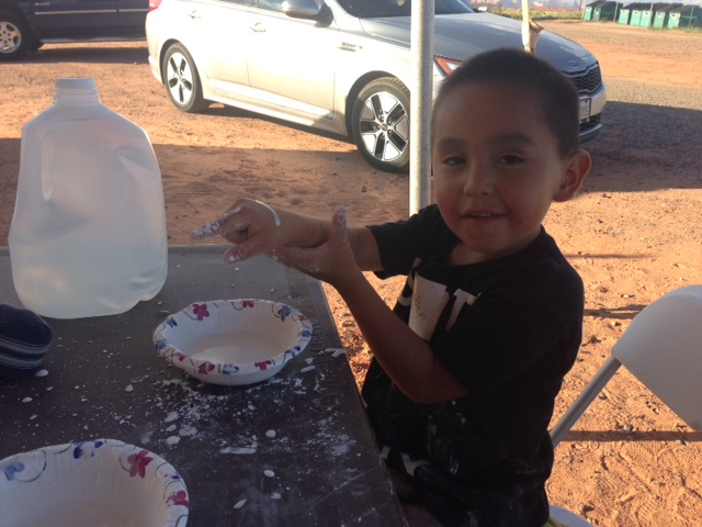 2. Last week, I mentioned that a bag full of pennies blew my mind. Well this week, water mixed with corn starch exploded my brain. The nuns mixed them together for the kids but, as soon as I saw it, I had to join in. Sure I looked like a weirdo but the mixture makes a paste that’s like solid and liquid. AT THE SAME TIME! MIND BLOWN! If you mush it, it’s solid. But if you scoop some up, it immediately turns liquidy and drips back down. Here’s a pic of me and my new friend, Chandler, playing with the miracle goo:
