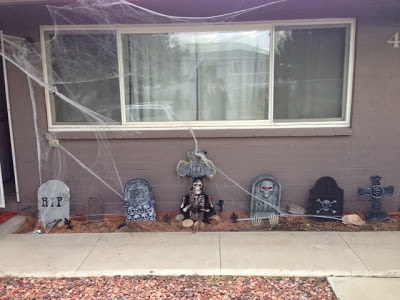 The cemetery was fairly standard with different tombstones and bones, some of which lit up. We built it next to the house, because there aren’t enough decorations (yet) to really fill the yard. Also, we’re afraid of hooligans coming along and steeling everything. This is what it looks like so far: