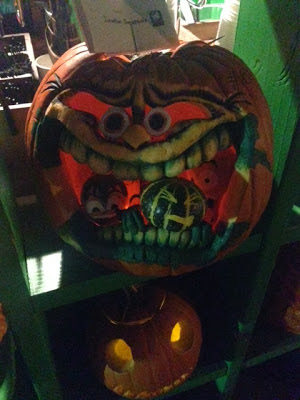 a. The first thing I judged (with Windy) was the pumpkin carving contest. There weren’t really any criteria other than ‘select pumpkins we think are cool.’ With that in mind, we walked around the submissions (about 20 of them) and noticed that, in the group, there were 19 amateur submissions, and 1 totally professional one. It really wasn’t fair. Don’t get me wrong, some of the pumpkins were really great. For example: