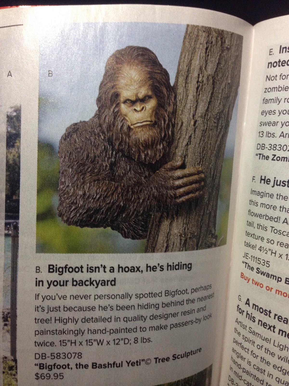 While the randomness alone makes this thing crazy, the description ups the ante. First off, the item is named “Bigfoot, the Bashful Yeti.” I can’t help but picture myself approaching Bigfoot. I’d say hi, and he’d blush and start kicking rocks so he doesn’t have to make eye contact. He’s so shy!