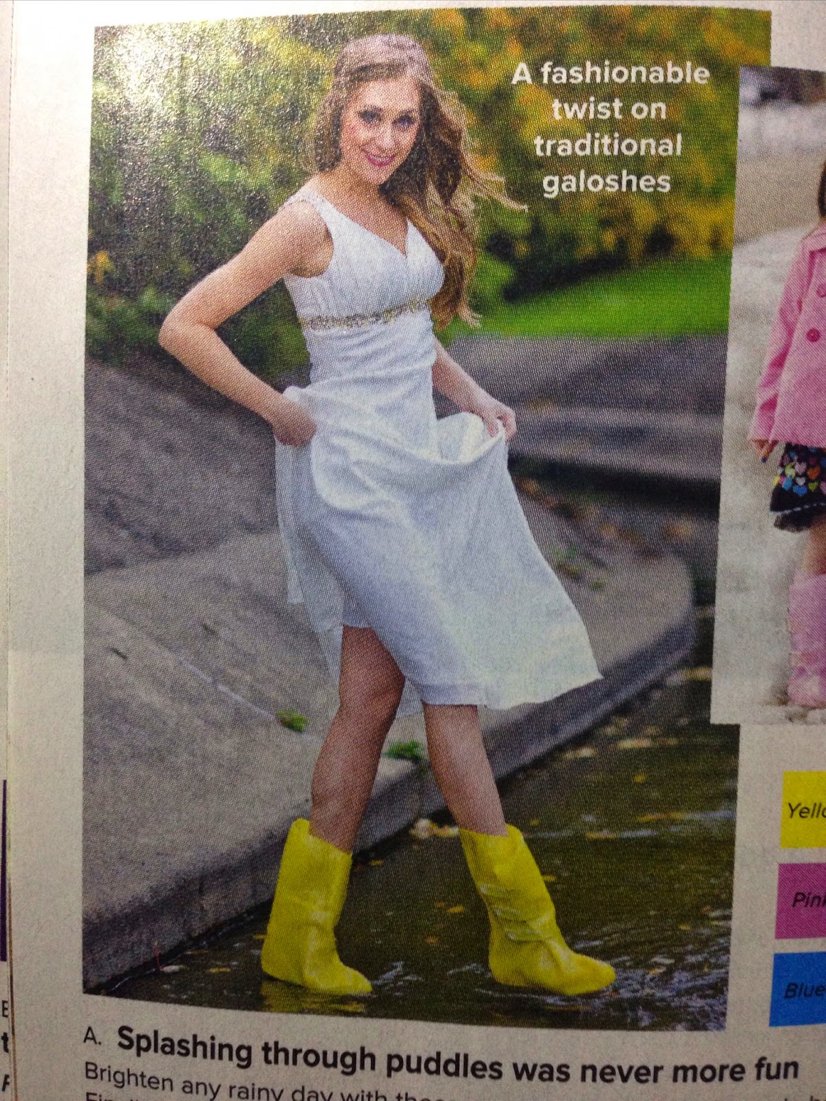 Running late for your wedding? Come across a nasty concrete stream? It’s a good thing you remembered fashionable galoshes. Your wedding is saved!